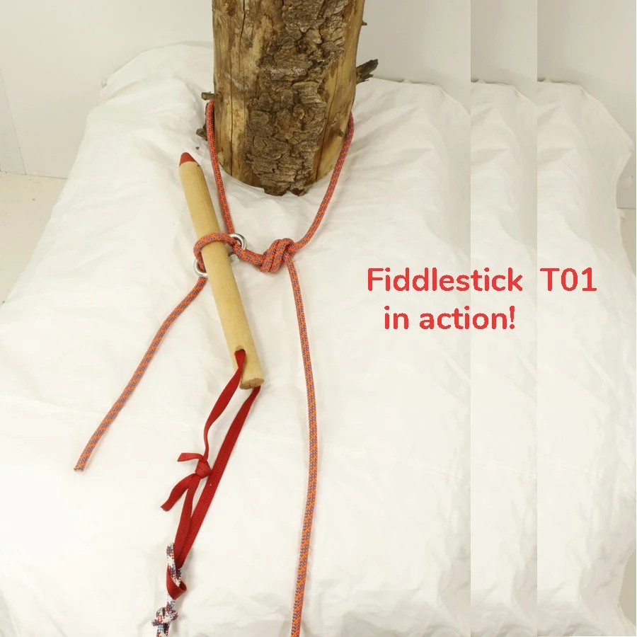 (The leader-style string on the Imlay FiddleStick is a continuation of the way Brendan strung his up. I use 3mm perlon and knots enclosed in heat shrink tubing because I have no wish to spend my evenings splicing amsteel.)