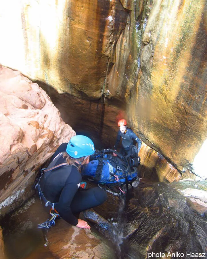 My intention for this trip was to compare the canyon to my guidebook writeup, update as needed, etc. I tend to walk through canyons constantly evaluating how it compares to my memory and published beta. As we got to the potholes of the Direct section, I was looking for the ledges we had bivied on last time through, and not finding them. Our brains tend to edit and shorten our memories of things… mine especially, being especially poor, and it being quite some time ago.