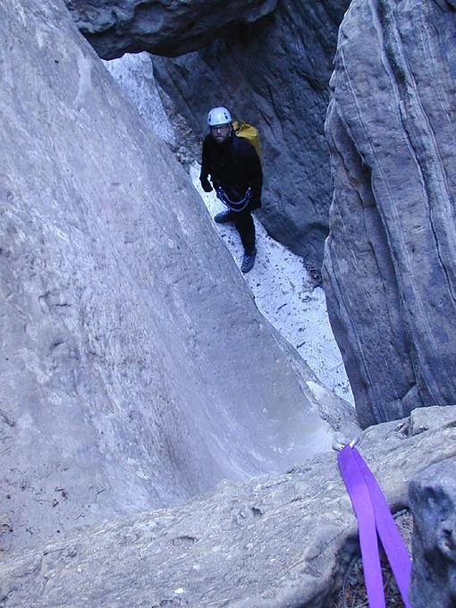 Descending Hidden Canyon from the top makes for a pretty good day of downclimbing and rappelling. In big snow years, Hidden can hold snow and ice well into the spring. Caution is advised.